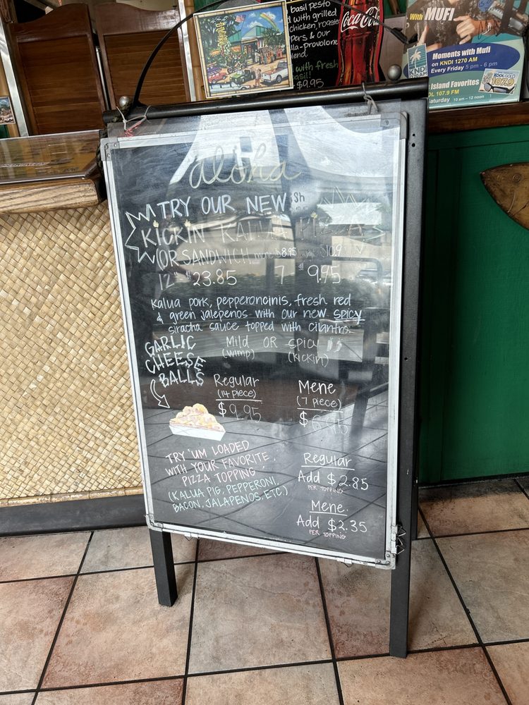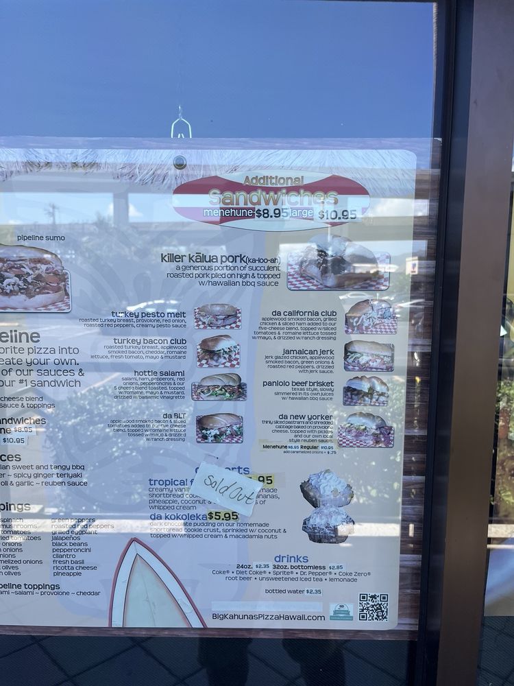 Welcome to Big Kahuna's Pizza, your new favorite spot for delicious pizzas and sandwiches in Honolulu! Located conveniently at 550 Paiea St, this vibrant eatery offers a menu bursting with options that cater to every palate. From traditional favorites like the Banzai Pizza to unique creations such as the Kanaka Pizza, each dish is crafted with fresh ingredients and a perfect crust.